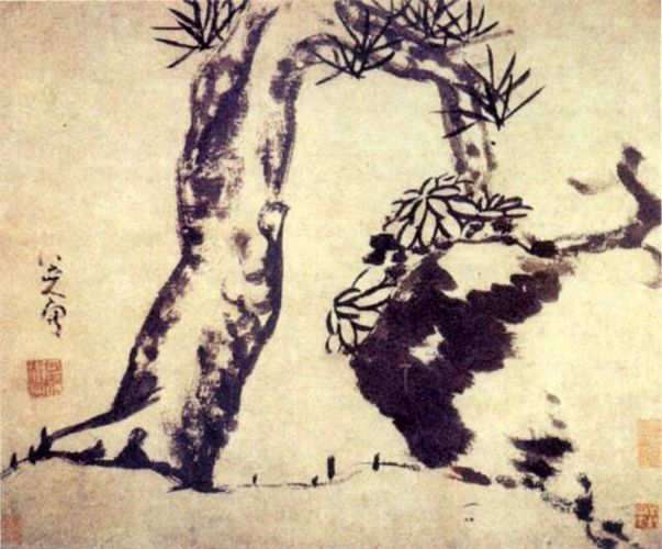 他一生对明忠心耿耿,以明朝遗民自居,不肯与清合作。他的作品往往以象征手法抒写心意,如画鱼、鸭、鸟等,皆以白眼向天,充满倔强之气。这样的形象,正是朱耷自我心态的写照。画山水,多取荒寒萧疏之景,剩山残水,仰塞之情溢于纸素,可谓“墨点无多泪点多,山河仍为旧山河”,“想见时人解图画,一峰还写宋山河”,可见朱耷寄情于画,以书画表达对旧王朝的眷恋。朱耷笔墨特点以放任恣纵见长,苍劲圆秀,清逸横生,不论大幅或小品,都有浑朴酣畅又明朗秀健的风神。章法结构不落俗套,在不完整中求完整。朱耷的绘画对后世影响极大。