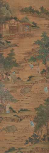 焦秉贞,山东济宁人。康熙年间任钦天监,是西洋天文学家、天主教士,汤若望的学生。据《国朝院画录》记载说:“秉贞职守灵台,深明测算,会司有得,取西法而复通之。圣祖(康熙)之奖其丹青,正以奖其理数也。”另外还说他工人物、山水、楼观,参用“海西法”,“海西法善于绘影,刻析分,以度量其阴阳向背,斜正长短,就其影之所着而设色,分浓、淡、明、阴焉”。这种画法早在明神宗时,从利玛窦带来天主像、圣母像开始,西洋画就随着宗教,传到了中国。西洋油画“与生人不殊”,让中国画家“无由措手”。虽然当时的文人画家,对它不屑一顾,说它“笔法全无,虽工亦匠”。但终究给中国画坛引入了一丝新风,使得一些画家,开始探索中西画法相结合的道路。
