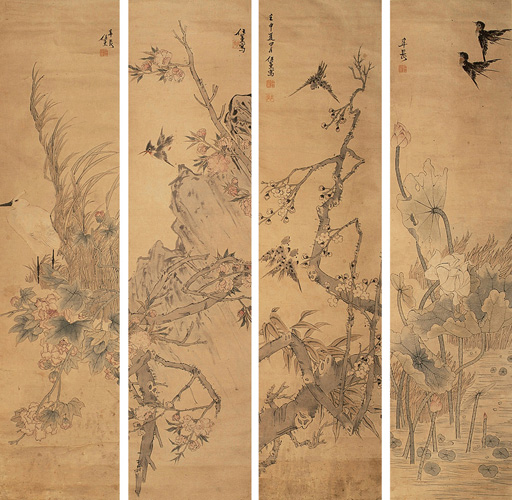 《花鸟四屏》 《紫气东来》