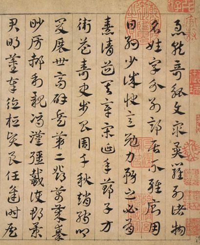 邓文原,1258年生,1328年逝世,绵州(今四川绵阳)人。元代书家。字善之,一字匪石,号素履先生。聪慧,学早成,年15而通《春秋》。官历国子司业,集贤直学士兼国子祭酒,翰林侍讲学士。卒赠江浙行省参知政事,谥文肃。工正、行、草书,早法“二王”,后师李北海。明•何良俊《四友斋丛说•书》称“邓善之亦是晋法,但欠熟圆。”黄文献奉敕撰公神道碑称文原,工手笔札,与赵魏公齐名。有《杖锡见过帖》、《与本斋札》传世。主要代表作品有章草书《急就章》卷,其它楷、行、草书散见于简牍诗札或名人书画题跋中。《急就章》卷,临皇象之作,书于大德三年(1299)三月十日。时邓氏42岁。章草,纸本墨迹,纵23.3厘米,横398.7厘米。藏北京故宫博物院。此卷是他早期应奉翰林时在大都(今北京)庆寿寺僧房为理仲雍(名熙)书。多以楷法入笔,运以行草,收笔多出隶意,回翔自若,清劲秀丽。结体严谨,笔势沉稳、遒劲,笔意挺健秀雅,俊逸横生。卷后有石岩、杨维祯等人跋。杨维祯在跋语中称此卷是邓氏“早年大合作”。