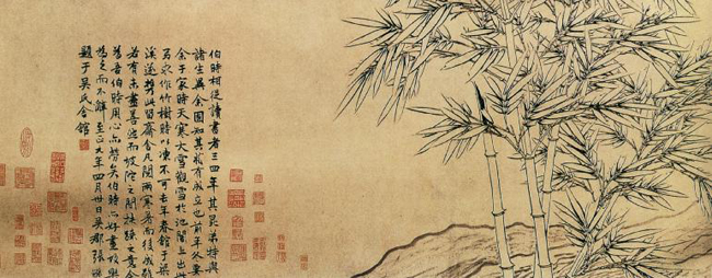 张逊,吴县(今江苏苏州)人。 生卒年不详,活动于元至正年间。字仲敏,号溪云。工诗擅画,擅画竹,尤精钩勒竹,妙绝当世。山水学巨然。《双钩竹及松石图》(张逊 长卷 纸本 墨笔 纵43.4厘米 横66.8厘米 北京故宫博物院藏)此图画陂陀间秀竹数丛,摇曳多姿,老松一株,横斜虬曲,与湖石相应成趣。竹子的枝、叶均用双钩法,严谨工整,笔致劲键,如“铁钩锁”。古松、陂陀用圆笔勾皴,以水墨略染,外柔内刚,具有董巨的遗风。张逊是元代画竹名家,但传世作品罕见。此帧张氏双钩竹孤本,实为可贵。