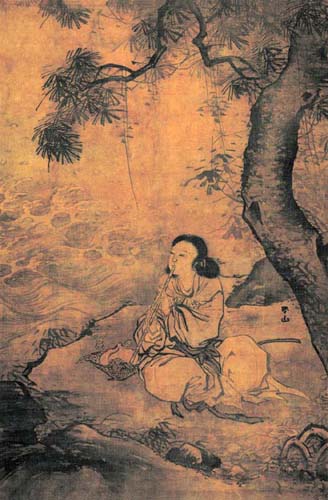 张路,明代画家,字天驰,号平山,祥符(今河南省开封市)人。早年画学戴进,临摹能肖其神,画法工细。至南京后,又宗法吴伟,变为粗笔写意。他善画人物,多绘神仙、士子、渔夫,形象质朴,神态清朗,具高昂向上的气质。景致简略,笔墨遒劲,风格豪放,然少秀逸和蕴藉之致;为浙派健将,亦开后来学者粗率之风。他具有典型风貌的水墨写意作品较多,人物多用顿折的重墨线条勾勒,山石以粗犷的笔触作大斧劈皴,运笔迅捷,水墨淋漓,具有豪放动荡的气势。亦能画写意花鸟。