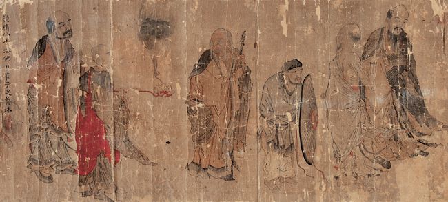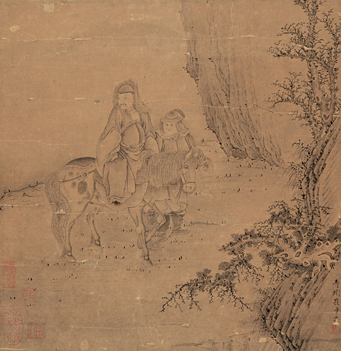 崔子忠,明代画家,初名丹,字开予,更名后,字道田,号北海,又号青蚓(一作青引)。山东莱阳人。崇祯六年投董其昌门。善画人物、仕女,师法顾恺之、陆探微、阎立本、吴道子,参酌周文矩笔意,细描设色,衣纹细劲,多用颤笔,面目奇古,自出新意。亦工肖像画,与陈洪绶齐名,称南陈北崔。传世作品有:《长百仙踪图》卷,现藏上海博物馆;《桐荫博古图》轴,辑入《中国历代名画集》;《云中玉女图》轴,辑入《中国绘画史图录》下册。