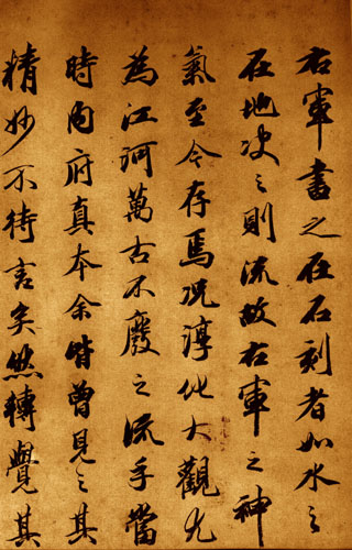 王文治(1730-1802),江苏丹徙(今镇江)人。清代书家。字禹卿,号梦楼。乾隆进士,殿试第三人。官翰林院侍读。出99 宰云南临安府。罢归。工书法,能得董其昌神髓,与梁同书齐名。文治平日喜用淡墨,以表现潇疏秀逸之神韵,时称“淡墨探花”,“谈墨翰林”。善画墨梅,韵致卓绝。诗宗唐、宋,自成一家。并精音律之学。著有《梦楼诗集》、《论书绝句三十首》等。传世书迹较多。《唐玄宗书鹡鸰颂卷跋》,书于癸丑(1793)。纸本墨迹。行书。跋文二则。凡12行,共132字。竖24.8厘米。台北故宫博物院藏。《石渠宝笈三编》著录。王文治的书法,秀润淡雅,法度谨严,给人清新明快的感觉。在清代书坛上有一定的影响。丁文隽在《书法精论》一书中认为王文治与当时的姚鼐、梁、梁同书等面目相近,“均以秀逸见长”,用这一评语来看待王文治的这幅行书题跋是颇恰合的。这幅作品给予人们的绝不是浓重,而是淡逸;绝不是魅力,而是风神。在字里行间,可以窥见王羲之与赵孟頫,却很难见到颜真卿与苏东坡。从此跋字的形态上看,能一任平和自然,不故作惊人之姿,看似寻常,而要达到此境,又并非容易,却不失为此跋的可贵之处。
