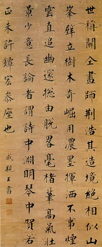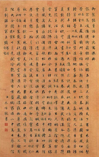 永瑆,1752年生,1823年逝世,满州人。爱新觉罗?永瑆,清代书家。号少厂,镜泉,诒晋斋主人。清高宗弘历十一子。乾隆间封成亲王,嘉庆间在军机处行走,谥哲。精于书法。曾书《裕陵圣德神功碑》。嘉庆九年上谕称“朕兄成亲王,自幼精专书法,深得古人用笔之意,博涉诸家,兼工各体,数十年临池无间,近日朝臣文字之工书者,罕见其右。”当时颇享盛誉,与翁方纲、刘墉、铁保并称“翁刘成铁”。家藏书画极富,刻有《诒晋斋法帖》。著有《话晋斋诗文集》、《随笔》、《全龙集》等。传世书迹甚多。《临王羲之帖》,纸本墨迹,草书。每页纵36厘米,横19.3厘米。日本兵库黑川古文化研究所藏。永瑆自幼酷爱书法艺术。几十年的刻苦临池,加上他得天独厚的条件,得窥内府所藏,而自藏又甚富,书名重一时。此幅作品,能看出他的临帖的艺术和他自身的书法造诣。既能体察它的流便妍美之体,若断不连之状,如斜而反直之势,潇洒隽越之韵,又有自得之意和自得之趣。此帖的几行小楷,更看出他的功力之深,几行小楷行笔温润,横画纤细,竖画较粗,显得端庄而巧寓变幻。结字以正为主,又有一些字略为倾仄,布白又能与王羲之的尺牍统一起来,使整幅法书显得遒劲婉丽,很有风姿。