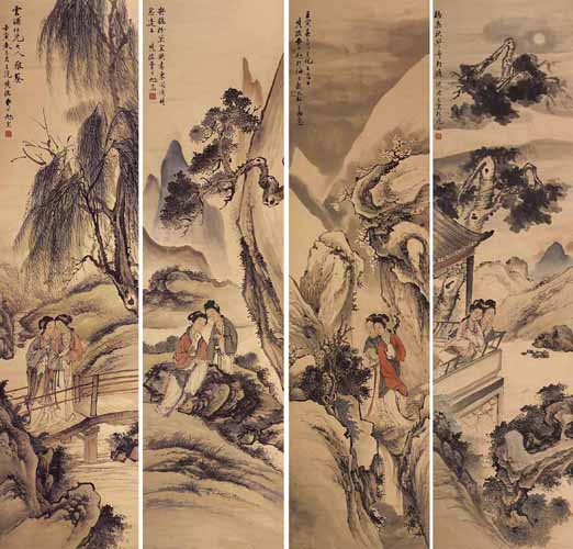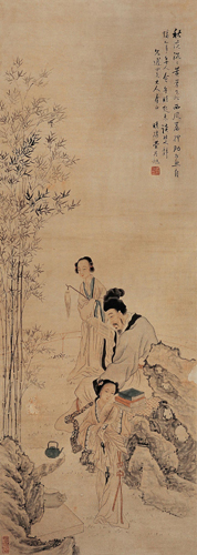 费丹旭(1801~1850),字子苕,号晓楼,晚号偶翁,又号环渚生,乌程(今浙江吴兴)人。工写照,如镜取影,尤精补景仕女,潇洒自然。兼工山水、花卉,以清灵雅澹之笔出之。偶作诗词,亦如其画。书法恽寿平,有韵致。卖画于江浙两省,寓杭州最久。有依旧草堂遗稿。《墨林今话、海上墨林、桐阴论画、清画家诗史》。