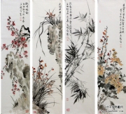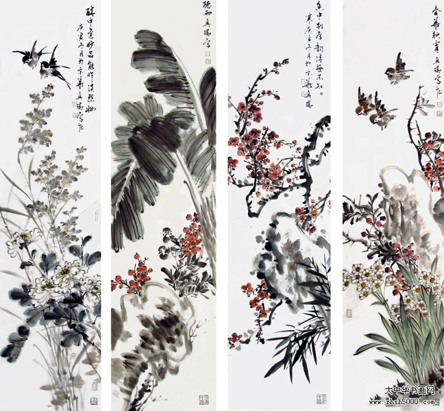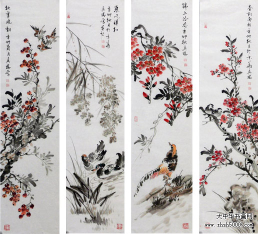 马兴瑞花鸟四屏