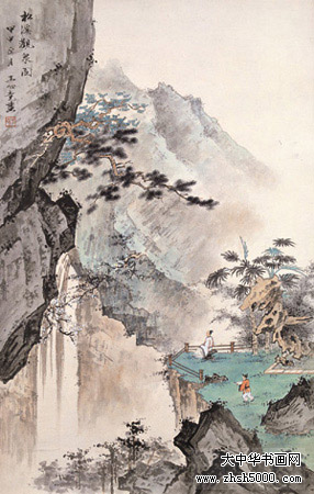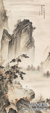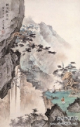 王心竟(1909-1954),又名心镜,字锡照,山东省烟台市人,居于北京。曾为中国美术家协会会员,自幼习画,少年时曾入金城门下,十几岁入“湖社”学画,师承赵梦朱、钟质夫,专攻山水画。1930年就读于北京辅仁大学美术系,后又入吴镜汀门下,师唐寅诸法,追两宋画风。“湖社”画会是北京最早的美术界学术组织,1926年冬成立,为纪念其前身——“中国画学研究会”的早期创办人金北楼先生,以金北楼旧号“藕湖”取名“湖社画会”,其弟子均以“湖”字为号。著名画家叶恭绰、陈半丁、王雪涛等均为湖社会员,张学良、齐白石、梅兰芳等均为湖社好友。“湖社”主要活动于北京、天津等地,后来又成立了“辽宁湖社书画研究会”,“湖社”画家中的赵梦朱、钟质夫、晏少翔、季观之、王心竟等人来到辽宁沈阳,在东北美专(1958年后改为鲁迅美术学院)任教。王心竟即于 1953年到东北美专任讲师,为东北地区的中国画教学和人才培养作出了极大的贡献,其山水画风整整影响了一代人。 代表作品有《山村晨歌》、《风雨情》等。