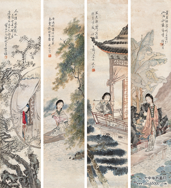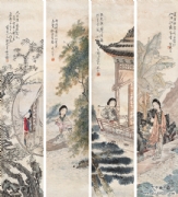 徐砚(1866-1954),字见石,号紫薇山人,浙江海宁人,海派画家。善画山水、人物、花鸟。尤工人物,初学吴友如,钱吉生(慧安),参陈老莲,后变以己法,在上海卖画,兼作年画及广告画等有名于时。好以《列仙传》、《列国志》等故事风俗为题材,造景清新,所绘人物栩栩如生,衬景楼阁妍丽异常,名噪一时,後曾应上海英商施德之药厂聘,专司绘广告画,晚年返乡,求画者甚众,卒年八十九 。