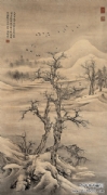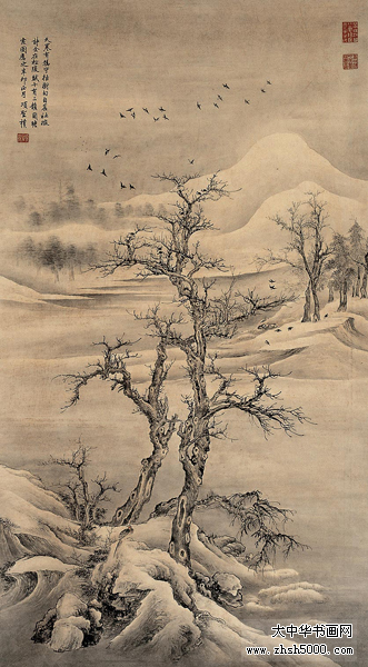 项圣谟(1597~1658),初字逸,后字孔彰,号易庵,别号甚多,已知者有子璋、子毗、胥山樵、胥樵、古胥山樵人、兔鸣叟、莲塘居士、松涛散仙、大酉山人、存存居士、烟波钓徒、狂吟客、鸳湖钓叟、逸叟、不夜楼中士、醉疯人、烟雨楼边钓鼇客等,浙江嘉兴人。祖父项元汴,为明末著名书画收藏家和画家。伯父项德新也善画。项圣谟自幼受家庭熏陶,精研古代书画名作,虽然曾由秀才举荐为国子监太学生,但不求仕进,而把兴趣投入到书画中,从而在绘画创作上,他很早就显现出了多方面的才能,山水、人物、花鸟无一不精,曾得到明末两位最为著名的鉴赏家,董其昌和李日华的高度评价。董其昌在他的画册上题跋,称“古人论画,以取物无疑为一合,非十三科全备,未能至此。范宽山水神品,犹借名手为人物,故知兼长之难。项孔彰此册,乃众美毕臻,树石屋宇,皆与宋人血战,就中山水,又兼元人气韵,虽其天骨自合,要亦工力至深,所谓士气、作家俱备。项子京有此文孙,不负好古鉴赏百年食报之胜事矣”,李日华称赞他的画风“英思神悟,超然独得”,是“崛起之豪”。