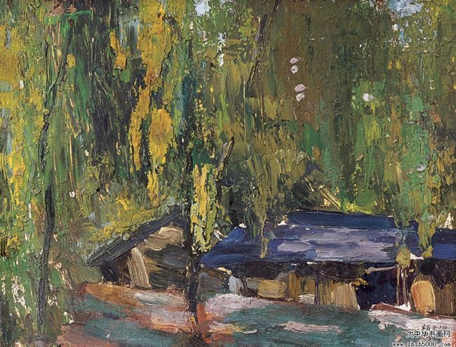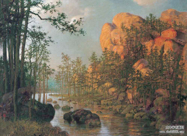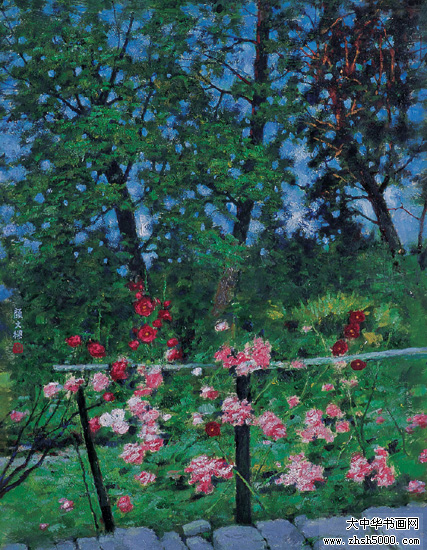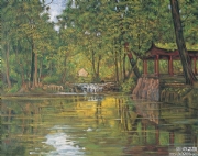 1912年自行试制油画颜料创作出第一幅油画《石湖串月》。